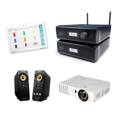 - Komputer wraz z serwerem pozwalający na stworzenie wewnętrznej sieci i sterowanie całym systemem za pomocą tabletu;