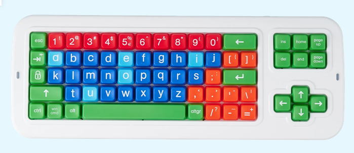 Atrakcyjnie i innowacyjnie zaprojektowana klawiatura dla dzieci w wieku przedszkolnym, wczesnoszkolnym, a zwłaszcza osób niepełnosprawnych. Doskonale wykorzystywana w nauce pisania i obsługi komputera. Przyjazna kolorystyka zwiększa motywacje i zainteresowanie użytkownika – nauka traktowana jest jak zabawa. Istnieje możliwość zakupu ramki zabezpieczającej ułatwiającej pracę osobom z niedowładem, drżeniem rąk, spastycznością.
